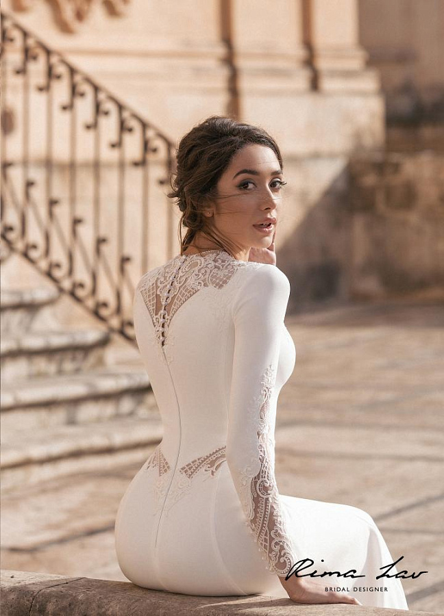 Роскошное платье из мягкой ткани, изящно облегает, подчеркивая женственные формы. Декольте, рукава и спинка инкрустированы филигранным кружевом. Стильный и необыкновенно притягательный образ.