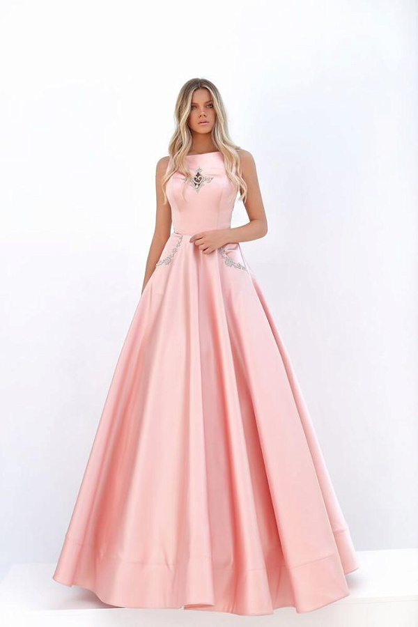 Платье для выпускного вечера Tarik Ediz 50752 gold имеет а-силуэт из атласа, украшенный хрустальным бисером на замочной скважине спереди и косых карманах. Это элегантное вечернее платье с карманами и с открытой спиной на шнуровке украшено вырезом бато.