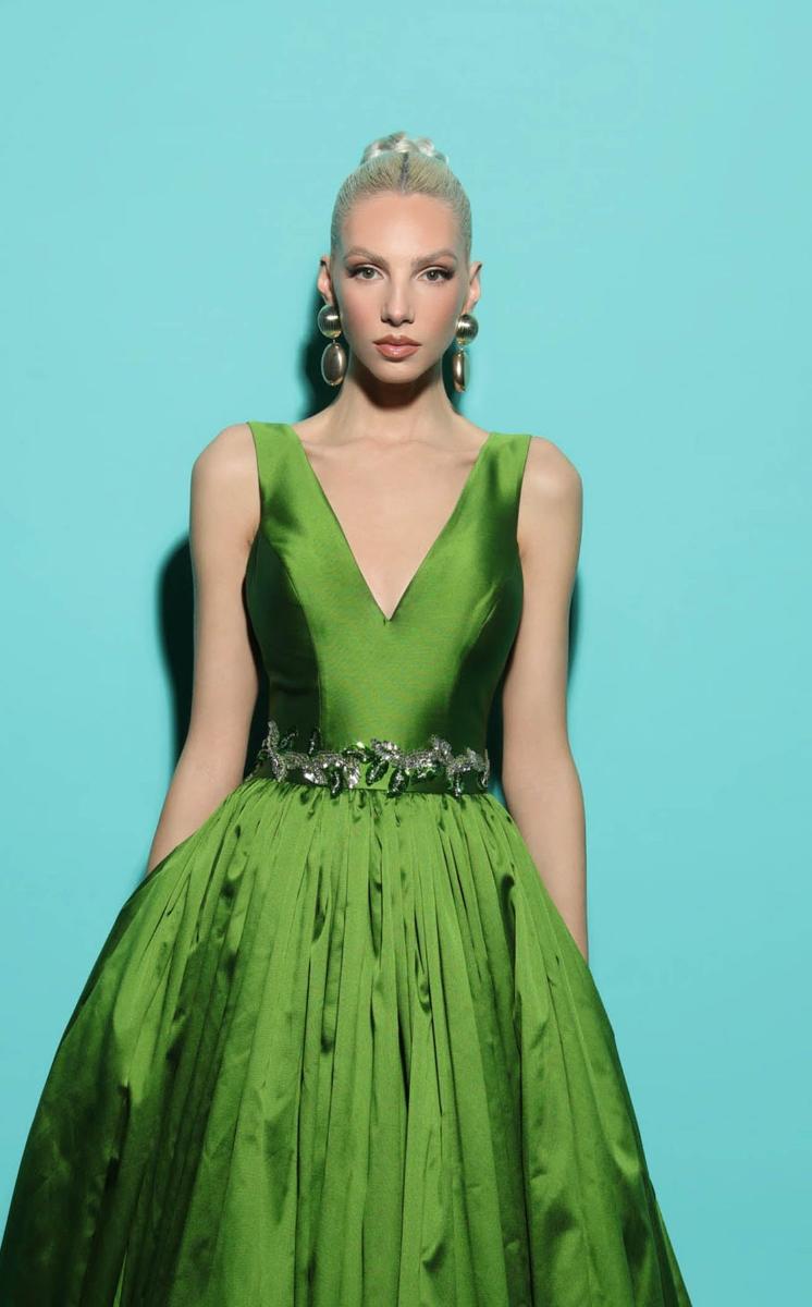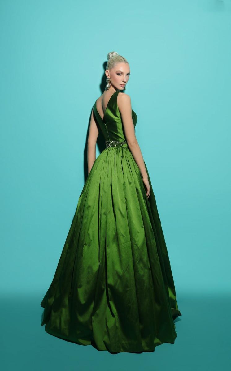 Очаруйте публику этим шедевром от Tarik Ediz. Платье без рукавов с глубоким V-образным вырезом и цветочной аппликацией на талии. Оно плавно переходит в мягкую плиссированную юбку А-силуэта и заканчивается потрясающим шлейфом. Металлизированная отделка этого платья от Tarik Ediz придаст вашему вечернему образу изящества.
